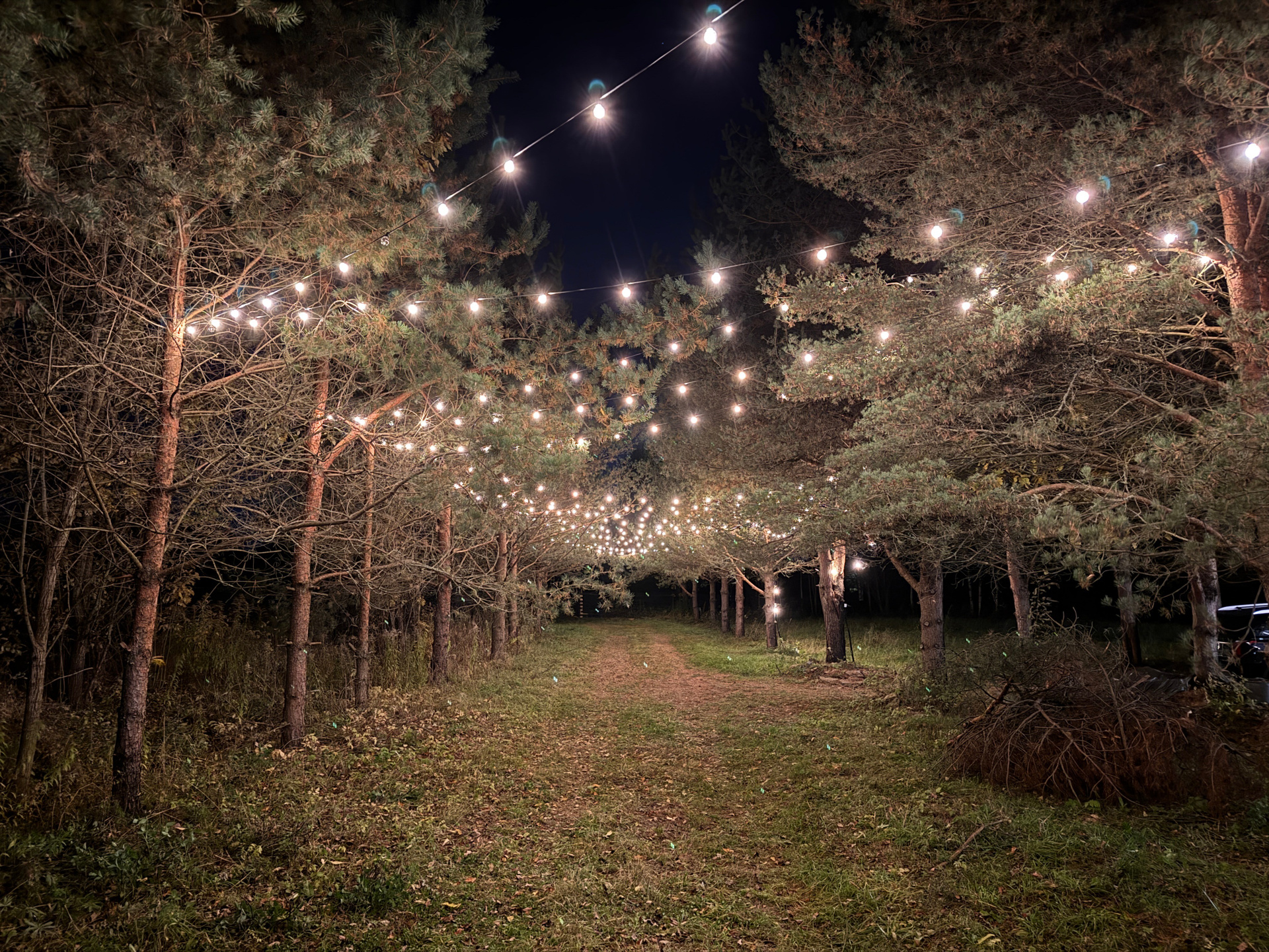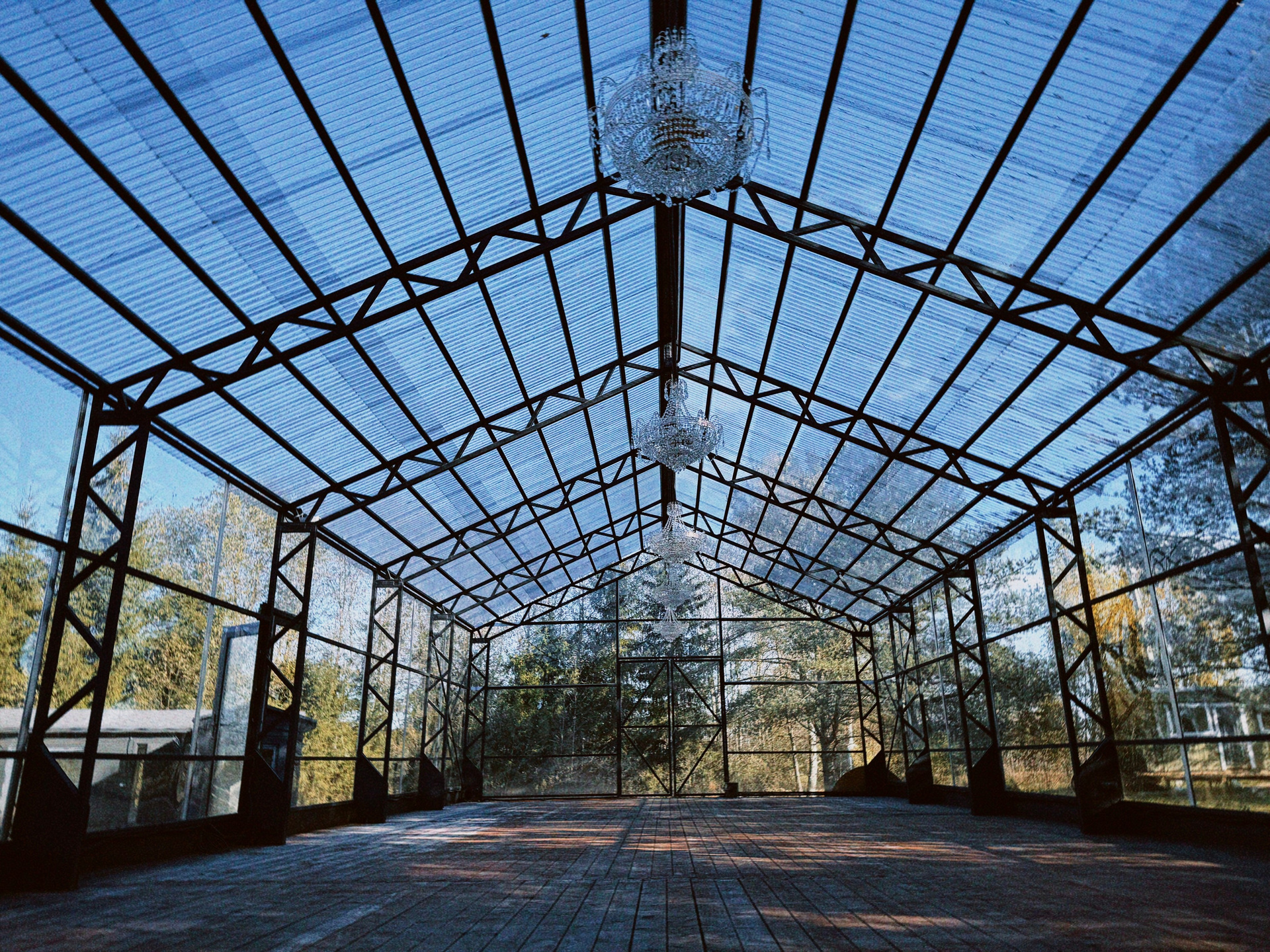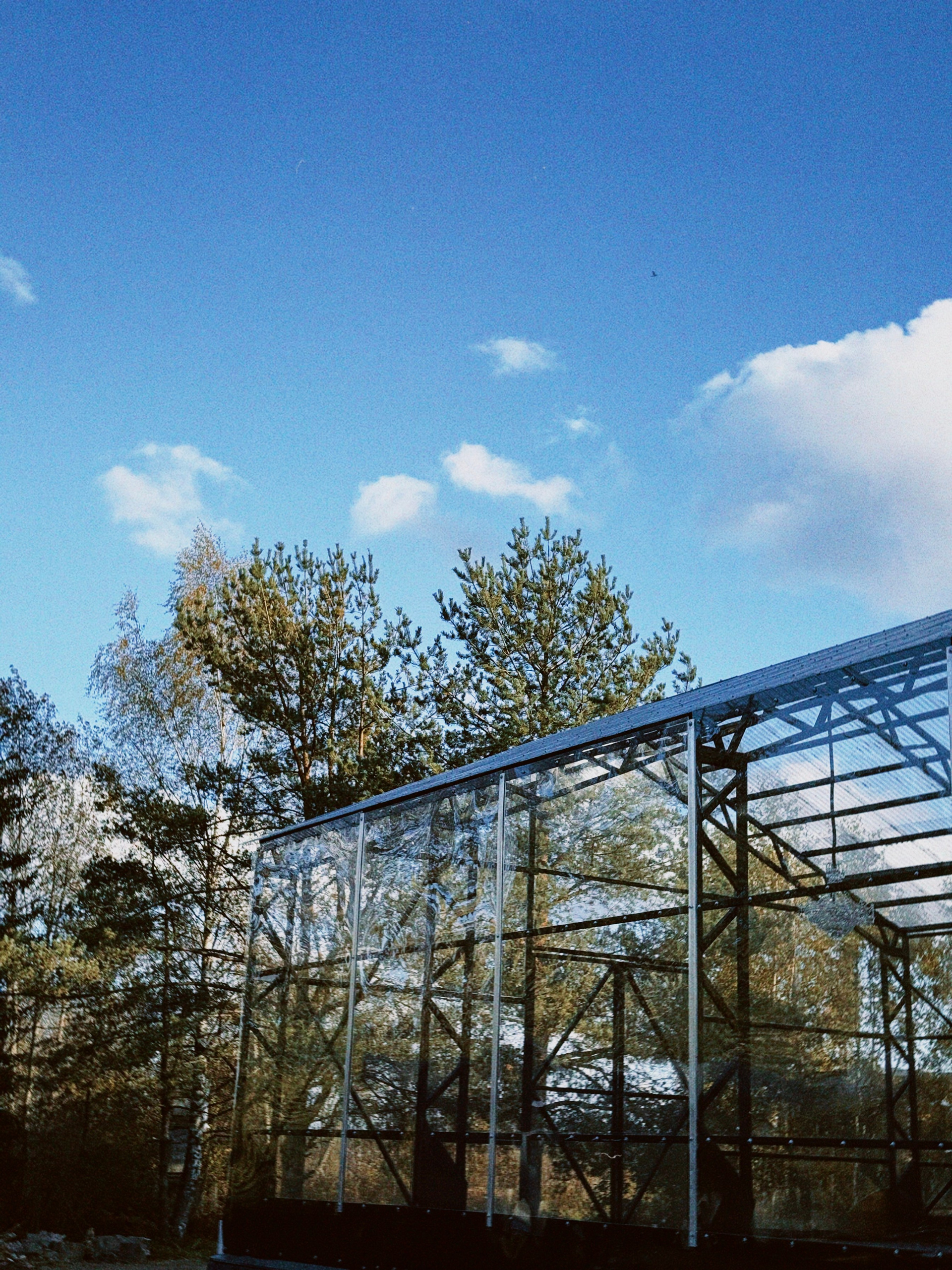Просторная стеклянная оранжерея в лесу, открытая терраса, площадка для выездной церемонии, прогулочные зоны, вид на поле — и все это на территории окруженной столетними соснами.